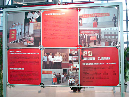 在此次全國(guó)藥品交易會(huì)上,組委會(huì)舉辦了60屆專題回顧活動(dòng)。在“眾志成城,抗震救災(zāi)——用我們的愛(ài)心給你們力量”大型圖片展,對(duì)全國(guó)醫(yī)藥企業(yè),在四川汶川地震時(shí)的奉獻(xiàn)愛(ài)心活動(dòng)進(jìn)行了報(bào)導(dǎo),并刊登了我公司王振剛總經(jīng)理以及我公司員工捐款活動(dòng)的大幅照片,四川醫(yī)藥工業(yè)協(xié)會(huì)向支持抗震救災(zāi)的藥界同仁,表示衷心感謝和致敬。全國(guó)藥品交易會(huì)組委會(huì)表示,為了支持災(zāi)區(qū)重建,全國(guó)藥品交易會(huì)將在四川連續(xù)舉辦三次。